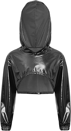 The cropped hooded style is fashionable and youthful, allowing for easy movement during dance routines and adding a modern flair