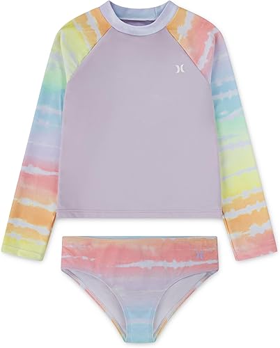 FULL COVERAGE: From surfing to sandcastle building, our rash guard two-piece swimsuit is her go-to choice for staying comfortable and protected during all her beachside activities. With its practical design and trendy patterns, she'll be ready for anything the summer brings!