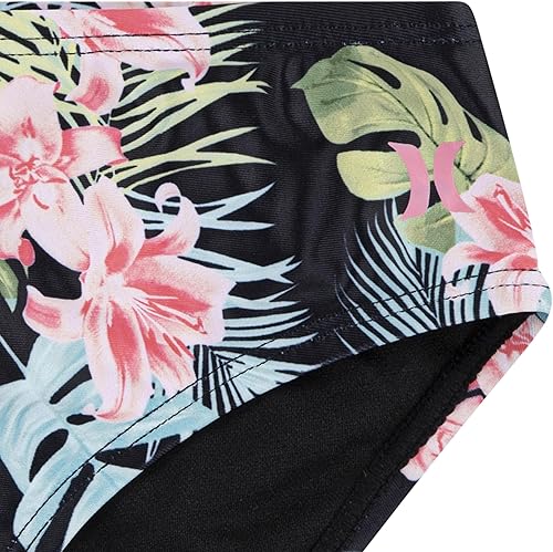 Hurley Girls' Long Sleeve Rash Guard and Bikini 3-Piece Swimsuit(Black,8)