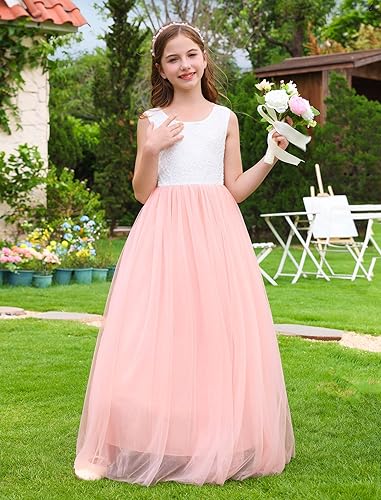 Size: Flower girls lace long maxi dress available for 2-14 Years child girl. Please refer to our size information in the below product description or the left picture for Detail Size Chart before ordering. Junior bridesmaid dresses for girls. Tulle lace layered dress with delicate flower and bow make your sweet princess to be the most graceful and shining girl in the crowd. Beautiful design features a chic style for your young baby and make your little fairy look so distinctive.