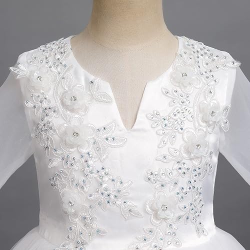 Flower Girls White First Communion Wedding Party Dress: White lace first communion dresses for girls, white baptism dress christening gown for girls. Little big girls white glitter sequins lace flower wedding bridesmaid pageant formal party long maxi dress, sweet junior princess 1st communion birthday dance prom gown floor length flare a-line puffy tulle ball dresses, elegant and gorgeous summer sleeveless white communion bowknot dresses for 3-14 year-old baby kids toddler girl.