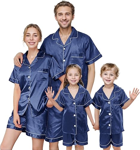 MATCHING PAJAMAS SETS ARE SOLD SEPARATELY. Please purchase each size individually. our family matching outfits features with button down design, notched lapels, chest pockets, and contrast piping, they exude classic charm. The comfort fabric, ideal for summer nights and indoor wear. This 2-piece matching loungewear set for family ensemble features chic shorts and a coordinating top. A must-have addition to your family christmas pajamas matching sets collection