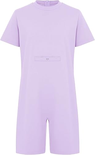 iiniim Kids Girls Boys Adaptive Clothing Basic Anti-Strip Back-Zip Romper Short Sleeve Jumpsuit for Special Needs Lavender 14 Years