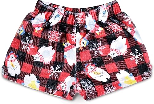 iscream Big Girls Silky Soft Plush Fun Print Fleece Shorts - Holiday Fun Collection(Holiday Hounds,4-6)