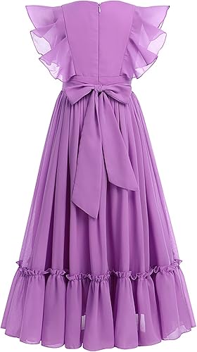 Girl Chiffon A-line Dresses: Chiffon flower girl dresses flutter sleeves princess gown, junior bridesmaid dress burgundy flower girl dress first communion dress A Line Floor Length Dress Pageant Dance Maxi Gown Birthday Wedding Party Ball Gowns. chiffon maxi dress for girls, girls kids flutter sleeves ruffles bridesmaid prom gown Party long dress. Make your baby become more fashionable, attractive, beautiful, your kids will like it as a Princess outfit .