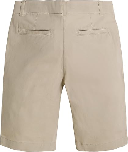 IZOD Girls' School Uniform Adaptive Bermuda Shorts, Adjustable Waistband, Velcro Closure & Faux Buttons(Khaki,4)