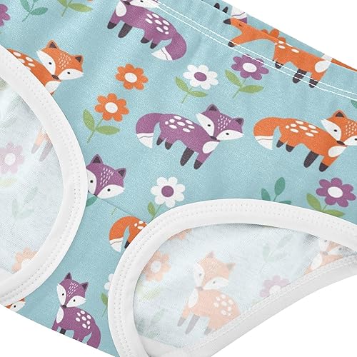 J JOYSAY Animal Fox Flowers Blue Girls' Underwear Cotton Comfort Briefs(Animal Fox Flowers Blue,2T)