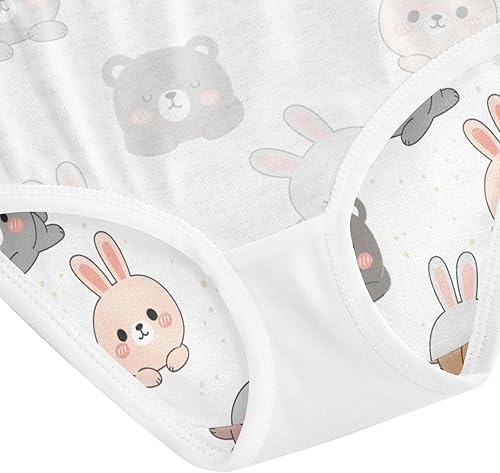 J JOYSAY Bear Bunny White Girls' Underwear Cotton Comfort Briefs(Bear Bunny White,5T)