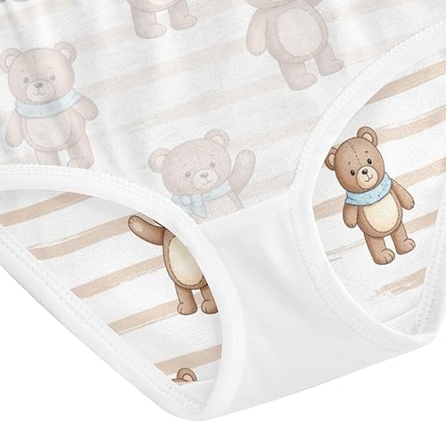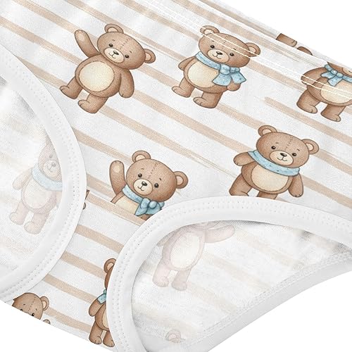 J JOYSAY Bear Stripes Brown Girls' Underwear Cotton Comfort Briefs(Bear Stripes Brown,3T)