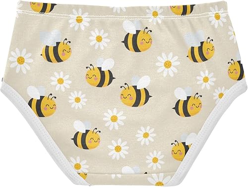 J JOYSAY Bee Flowers Daisy Beige Girls' Underwear Cotton Comfort Briefs(Bee Flowers Daisy Beige,2T)