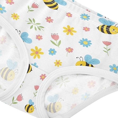 J JOYSAY Bee Leaves Flowers White Girls' Underwear Cotton Comfort Briefs(Bee Leaves Flowers White,6 Years)