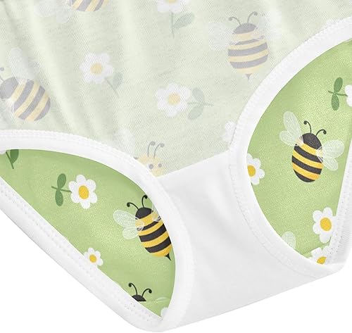 J JOYSAY Bees Flowers Green Girls' Underwear Cotton Comfort Briefs(Bees Flowers Green,5T)