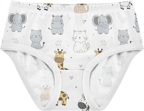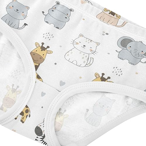J JOYSAY Cats Elephants Giraffe White Girls' Underwear Cotton Comfort Briefs(Cats Elephants Giraffe White,3T)