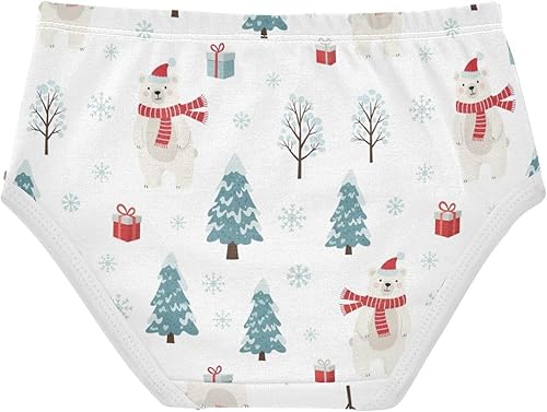 J JOYSAY Christmas Trees Bears White Girls' Underwear Cotton Comfort Briefs(Christmas Trees Bears White,4T)