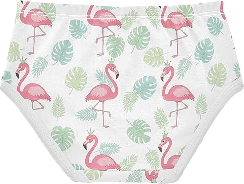 J JOYSAY Flamingo Leaf Tropical White Girls' Underwear Cotton Comfort Briefs(Flamingo Leaf Tropical White,2T)