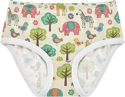 J JOYSAY Giraffe Elephant Beige Girls' Underwear Cotton Comfort Briefs(Giraffe Elephant Beige,5T)