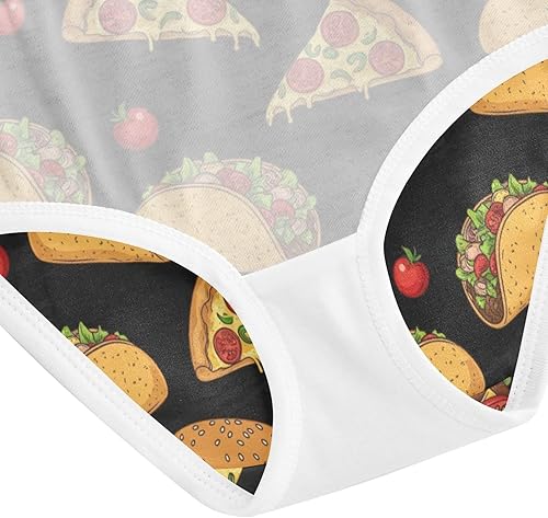 J JOYSAY Hamburger Pizza Black Girls' Underwear Cotton Comfort Briefs(Hamburger Pizza Black,4T)