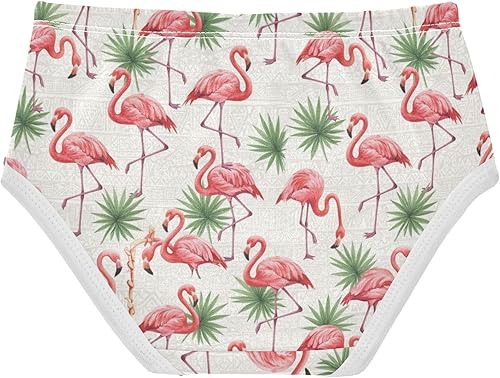 J JOYSAY Leaves Flamingo Tropical White Girls' Underwear Cotton Comfort Briefs(Leaves Flamingo Tropical White,3T)