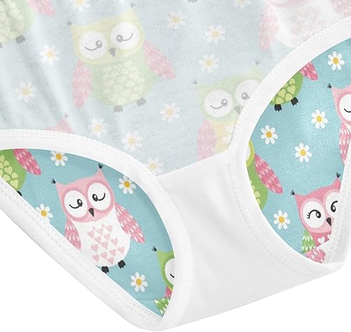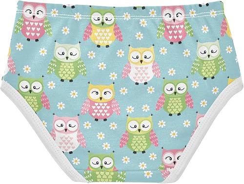 J JOYSAY Owls Flowers Blue Girls' Underwear Cotton Comfort Briefs(Owls Flowers Blue,2T)