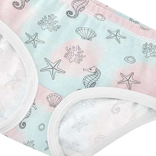 J JOYSAY Seahorse Shells White Girls' Underwear Cotton Comfort Briefs(Seahorse Shells White,6 Years)