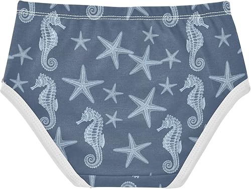 J JOYSAY Seastar Seahorse Blue Girls' Underwear Cotton Comfort Briefs(Seastar Seahorse Blue,3T)