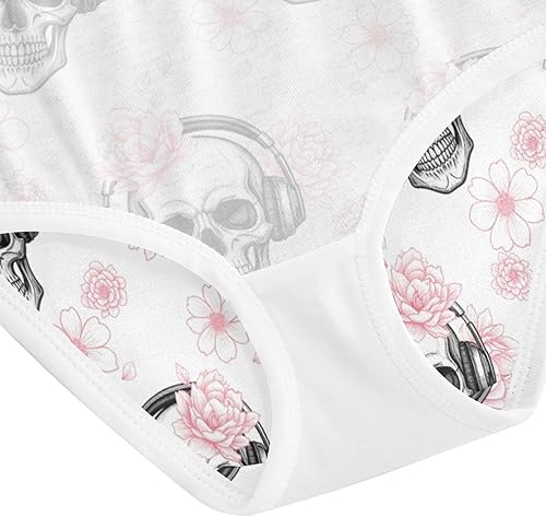 J JOYSAY Skull Flowers Music White Girls' Underwear Cotton Comfort Briefs(Skull Flowers Music White,2T)