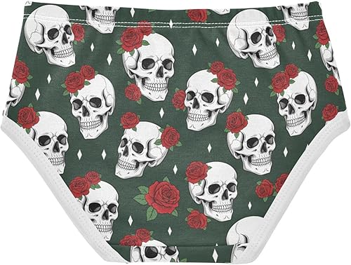 J JOYSAY Skull Rose Flowers Green Girls' Underwear Cotton Comfort Briefs(Skull Rose Flowers Green,2T)