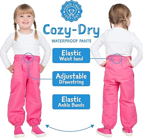 COMFORTABLE PROTECTION: These rain and snow pants feel just as comfortable as regular pants! Waterproof kids rain pants with pockets and elasticized ankles, keeping out rain, snow and slush. Comfortable elastic waistband with drawstring adjustment.
