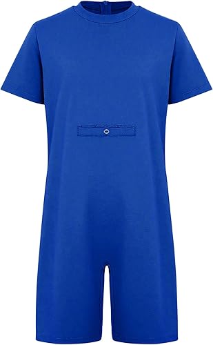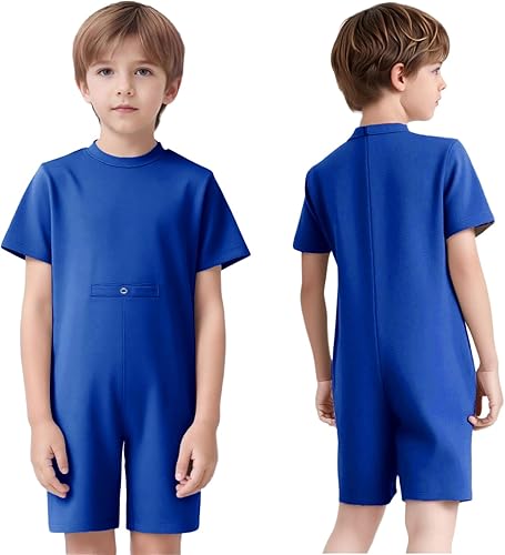 JanJean Adaptive Clothing for Children Boys Girls Special Needs Autism Sensory Jumpsuit Short Sleeve Anti-Strip Romper Royal Blue 6 Years