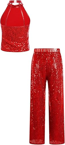 The lining of sequin crop top and pants set is made of soft fabric, no scratchy to girl's skin, breathable and comfortable to wear