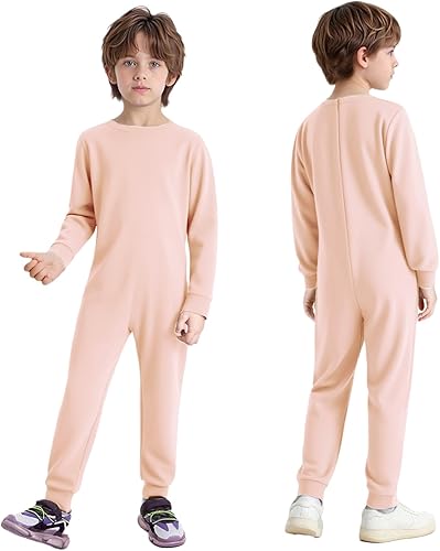 JEATHA Zip Back Long Sleeve Long Leg Jumpsuit for Boys and Girls Adaptive Clothing for Kids with Special Needs Orange Pink 14 Years
