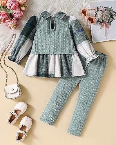 Cute Toddler Girls Clothes: For Fashion-Moms Solving 2-8Y Playdate & Party Pain Points! Plaid Collar Top + Ripple Texture Pants = Comfort-Cute Balance. No More Scratchy Outfits or Boring Styles!