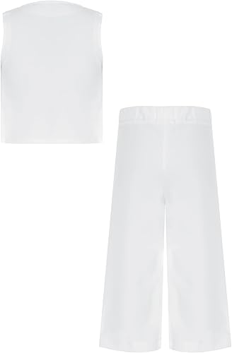 Jelory Two-piece Girls' Vest And Pants Suit Retro Girls' Vest And Long Pants Suit Family Agreements White 5-6 Years