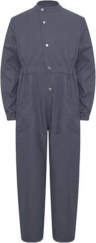 JEYPINMI Girls One Piece Romper Coverall Stand Collar Jumpsuit Straight Leg Cargo Pant Mechanic Boiler Suit Grey 6 Years