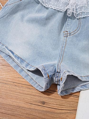 JEYPINMI Little Girls Denim Summer Shorts Elastic Waistband Trendy Clothes Lace Ruffles Jeans Shorts(Blue,5-6 Years)