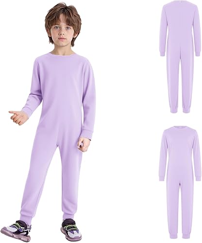 Jhaoyu Adaptive Clothing for Special Needs Kids Long Sleeve Cotton Back Zipper Anti-strip Jumpsuit Lavender 12 Years