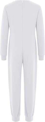 Jhaoyu Adaptive Clothing for Special Needs Kids Long Sleeve Cotton Back Zipper Anti-strip Jumpsuit White 10 Years