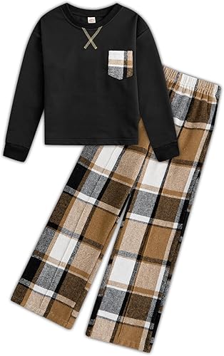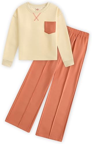2 Piece Outfits Fabric: Tops 95% polyester and 5% spandex, woolen pants 100% polyester; It is not easy to deform and comfortable to wear; 5-14Y girls pants set is suitable for spring, autumn and winter