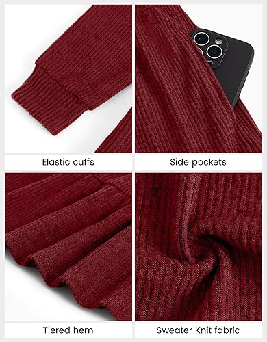 【Design】: Classic square neck is matched with long sleeves and a-line version, knee-length, and has two side pockets. It is simple and basic and suitable for daily wear.