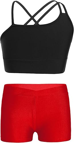 Kids Girls Asymmetrical Strappy Crop Top with V-front Waistband Shorts