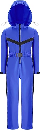 Jugaoge Kids Girls Ski Suit One Piece Snowboarding Jumpsuits Hooded Waterproof Snowsuit for Snow Sports Blue 10 Years