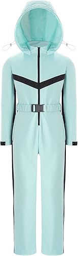 Jugaoge Kids Girls Ski Suit One Piece Snowboarding Jumpsuits Hooded Waterproof Snowsuit for Snow Sports Light Green 10 Years