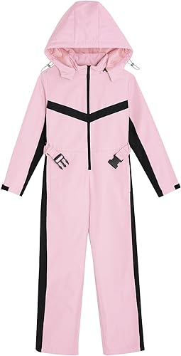 Jugaoge Kids Girls Ski Suit One Piece Snowboarding Jumpsuits Hooded Waterproof Snowsuit for Snow Sports Pink 6 Years