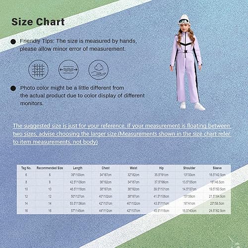 Jugaoge Kids Girls Ski Suit One Piece Snowboarding Jumpsuits Hooded Waterproof Snowsuit for Snow Sports Purple 8 Years