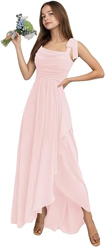 EXQUISITE DESIGN: Tiered, square neckline, sleeveless, A-line, zipper back, floor length. Junior bridesmaid dresses for Teen Girls, chiffon flower girl dresses, Princess dresses, girls formal dresses, Formal Wedding Guest Gowns, Pageant Prom Gowns.