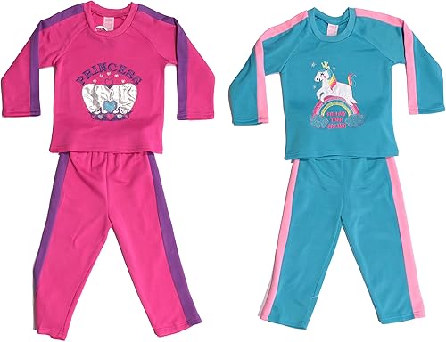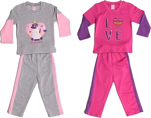 DOUBLE THE CUTENESS: Adorable fleece sets for girls that little princess will relish. Lovely embroidery, cute applique, layered sleeves, and a darling touch of color, make these outfits for girls pop. Every pack includes 2 pant and top sets for double the value.