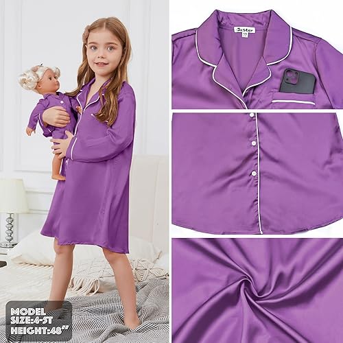 Matching Girls& Doll satin nightgown for girls, 18 inch doll clothes , silk night shirts, long sleeve button up down dress