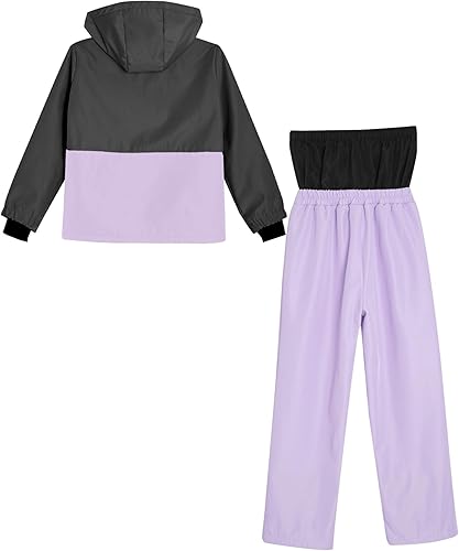 Kaerm Kids Girls Long Sleeve Hooded Ski Jacket and Pant Set Winter Warm Snowsuits Outdoor Snow Skiing Suits(Black,6 Years)