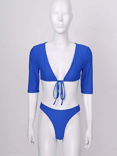 Solid Color Women Beachwear Bathing Suit Bikini Set 2 Piece Half Sleeve Tie Front High Waist Thong Tankini Swimsuit