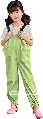 KAGAYD Boys Girls Reflective Water-Proof Rain Pants Lightweight Mud Rainwear Solid Overalls Hiking Cargo Pants(Green,3-4T)